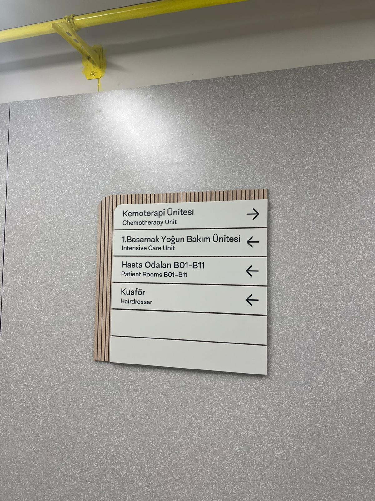 Bu kapsamda hastanenin iç ve dış mekân yönlendirme sistemleri, Damapano tarafından proje bazlı olarak tasarlanmış, üretilmiş ve montajı tamamlanmıştır.